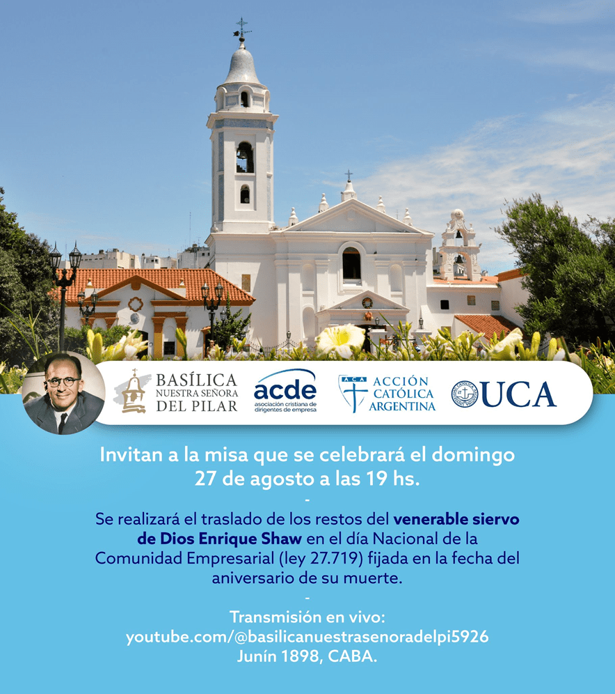 Atualmente, os restos do Venerável Enrique Shaw repousam no Cemitério de la Recoleta. No entanto, em honra a sua memória e legado, uma Missa especial será realizada às 19hrs na Basílica Nuestra Señora Del Pilar onde os restos serão depositados.